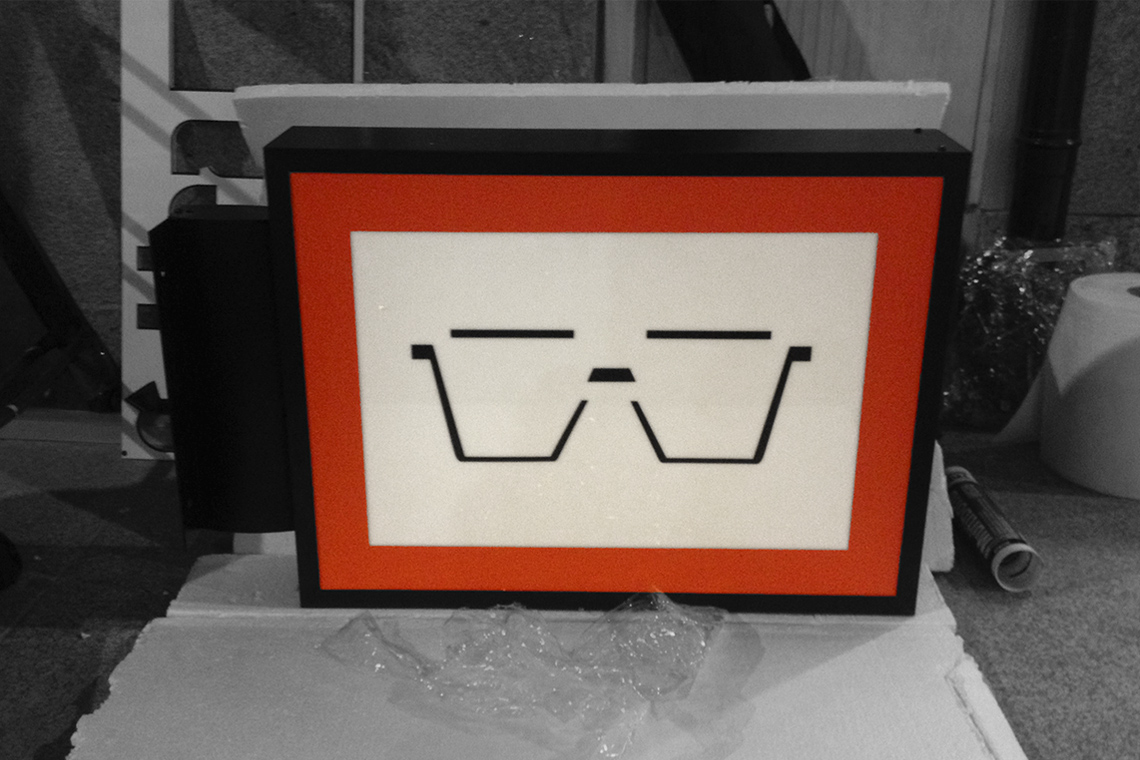 Double sided light box for street advertisment. Simple design featuring the company's colour scheme.
