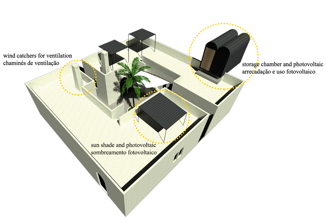 So we elect a recognizable identity morphology - familiar for the spirits - designing with old and idiosyncratic aspects like the wind catchers ventilator, roof terraces or giving privacy from the streets to live inwards - the secular courtyard, among others.