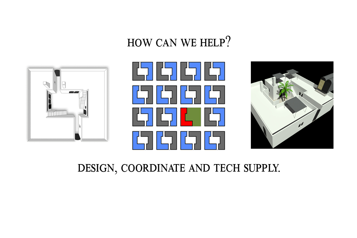The unit (home cell) is a L shape house of 80sqm. The plot it’s a 200sqm land with two home units and common areas. The block is 4 x 4 plots.
